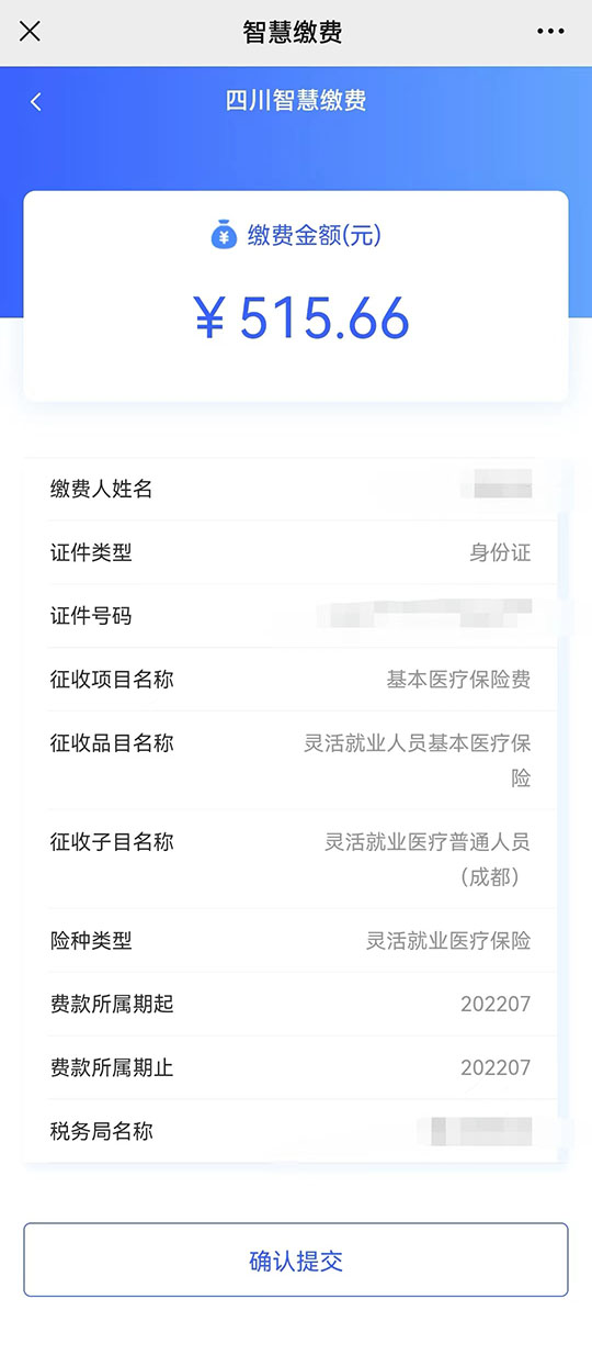 选择缴费险种,确认缴费档次金额,点击“下一步”、确认提交。