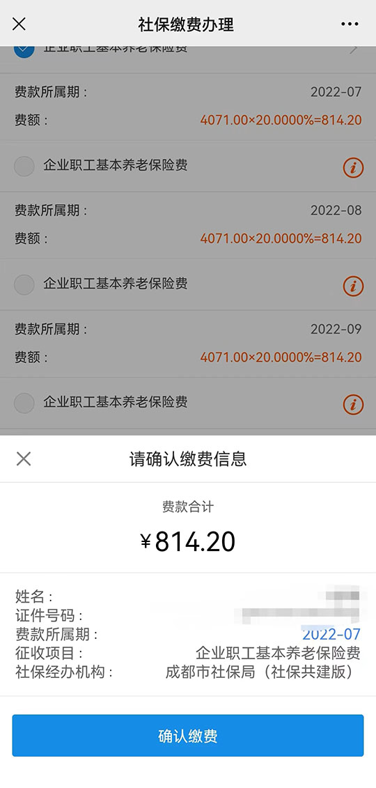 选择支付方式,点击“确认缴费”,进行支付,完成缴费。